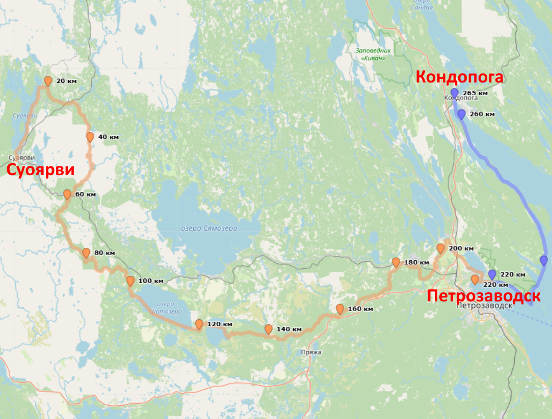 В трек маршрута входили следующие участки: